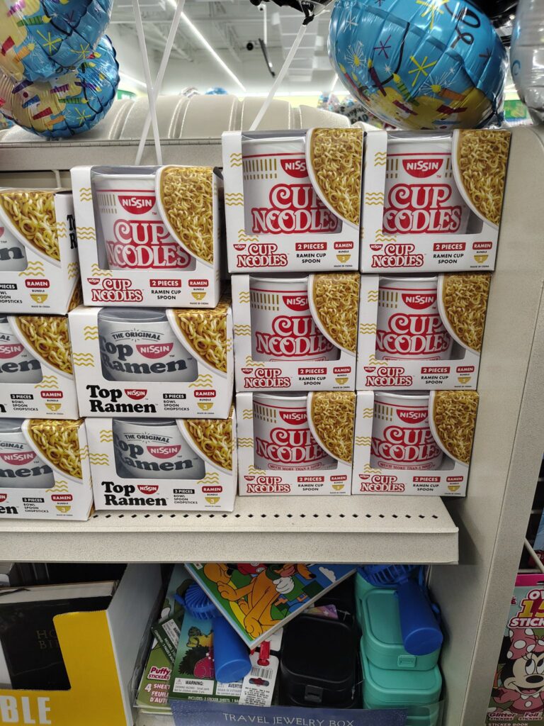 I found my kitchen shears, grabbed a few snacks, and then came across these really fun ramen bowls designed like cup noodles 😋. The Mr. and I make homemade ramen all the time, so I couldn’t leave those behind.